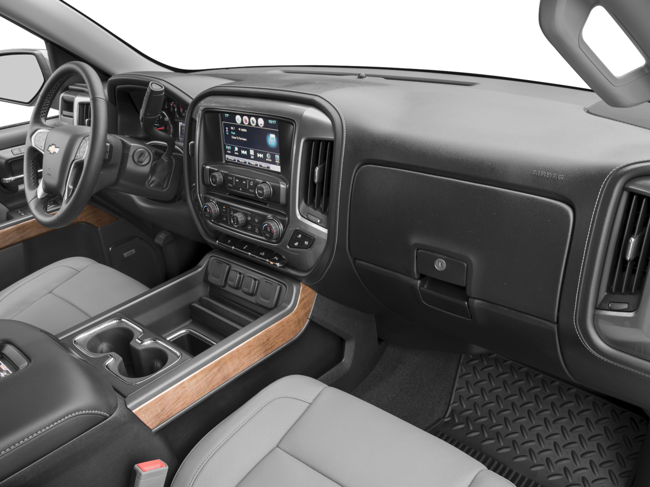 This model offers Automatic Climate Control for personalized comfort. This model features a high end BOSE stereo system. The vehicle features steering wheel audio controls. The leather seats in this Chevrolet Silverado are a must for buyers looking for comfort, durability, and style. Keep your hands warm all winter with a heated steering wheel in this 1/2 ton pickup . The installed navigation system will keep you on the right path. An off-road package is installed on this model so you are ready for your four-wheeling best. Protect it from unwanted accidents with a cutting edge backup camera system. The rear parking assist technology on this Chevrolet Silverado will put you at ease when reversing. The system alerts you as you get closer to an obstruction. Never get into a cold vehicle again with the remote start feature on this 2017 Chevrolet Silverado 1500. This model features a hands-free Bluetooth® phone system.