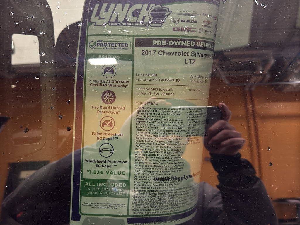 This Chevrolet Silverado's combination of V8 power, rugged off-road capability, and upscale amenities make it a versatile choice for drivers who want performance without sacrificing refinement. Located in Burlington, WI, this truck is ready for local pickup and nearby test drives. Whether you need serious towing capacity, a reliable work companion, or a comfortable long-distance cruiser, this 2017 Chevrolet Silverado 1500 LTZ delivers. Contact us to arrange a viewing and experience the powerful performance and premium features of this well-maintained, CARFAX 1-Owner Chevrolet Silverado in person.