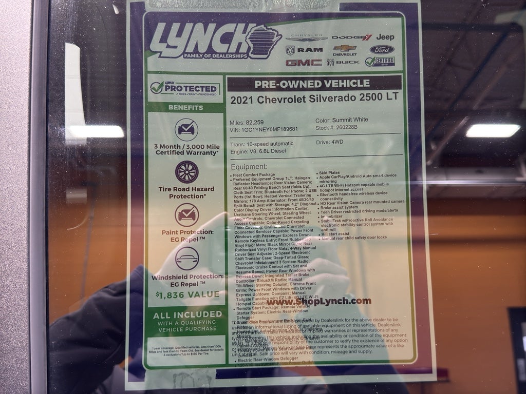 2021 Chevrolet Silverado 2500 LT 4WD — powerful performance and rugged dependability meet advanced comfort in this exceptional diesel pickup, located in Burlington, WI. Equipped with a V8 6.6L Duramax diesel engine and a durable automatic transmission, this Chevrolet Silverado delivers best-in-class towing capability, impressive torque for heavy hauling, and confident four-wheel-drive traction for worksite demands and Wisconsin winters.