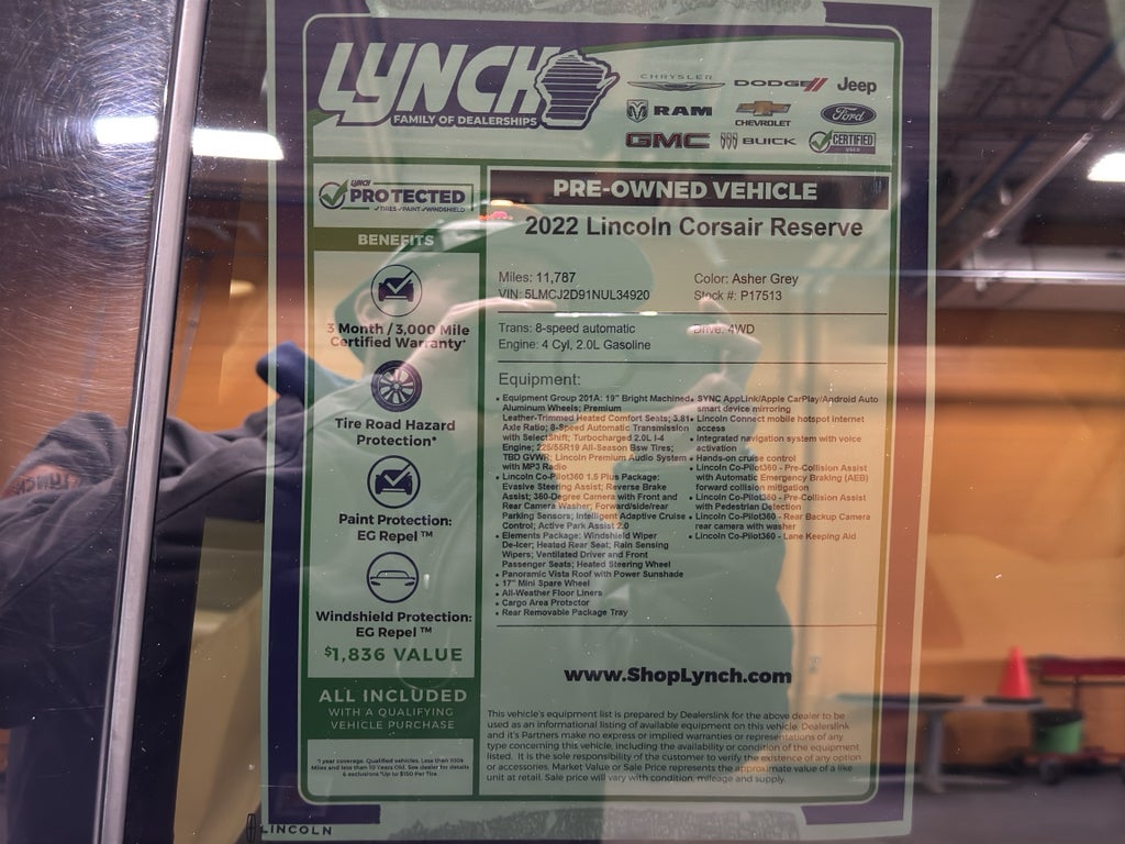 Priced to move, this vehicle currently offers the best price in the local market, giving you exceptional value compared to similar listings. Whether you prioritize luxury appointments, modern tech, or dependable performance, this 2022 Lincoln Corsair Reserve in Burlington, WI is a standout choice. Contact us to schedule a test drive and experience the blend of refinement and capability this low-mileage Lincoln Corsair delivers.