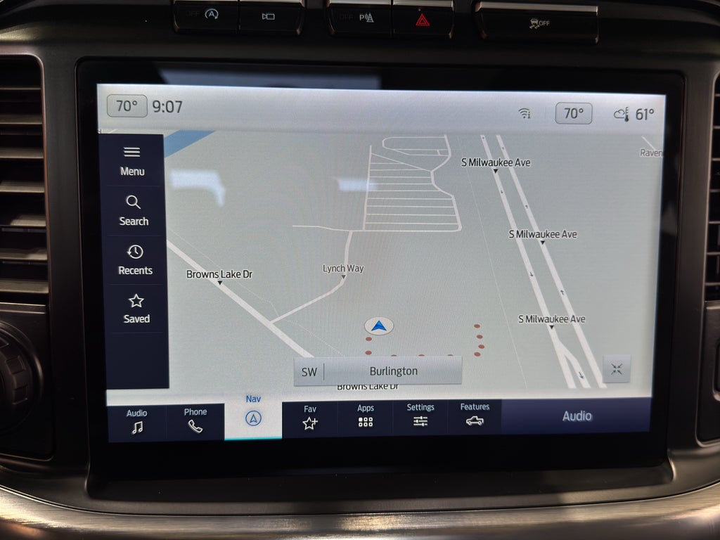 Ford Co-Pilot360 Assist 2.0. Lariat Sport Appearance Package: Box Side Decal; Chrome Single-Tip Exhaust; Body-Colour Door Handles with Body-Colour Bezel; 20" 6-Spoke Dark Alloy Painted Aluminum Wheels; Accent-Colour Angular Step Bar; Dark Two-Bar and One Minor Bar Style Grille; Body-Colour Front and Rear Bumpers. Equipment Group 502A High: 3.55 Axle Ratio; Electronic 10-Speed Automatic Transmission; Rain-Sensing Wipers; Leather-Trimmed Bucket Seats; Wireless Charging Pad; Power Tilt/telescoping Steering Column with Memory; 2. 994 Kg (6. 600 Lb) Payload Package GVWR; 2.7L V6 EcoBoost Engine; B&O Sound System by Bang and Olufsen; Heated Rear Seats; LED Projector with Dynamic Bending Headlamps. Twin Panel Moonroof. 275/60R20 BSW AT Tires. Power Tailgate. **Equipment listed is based on original vehic